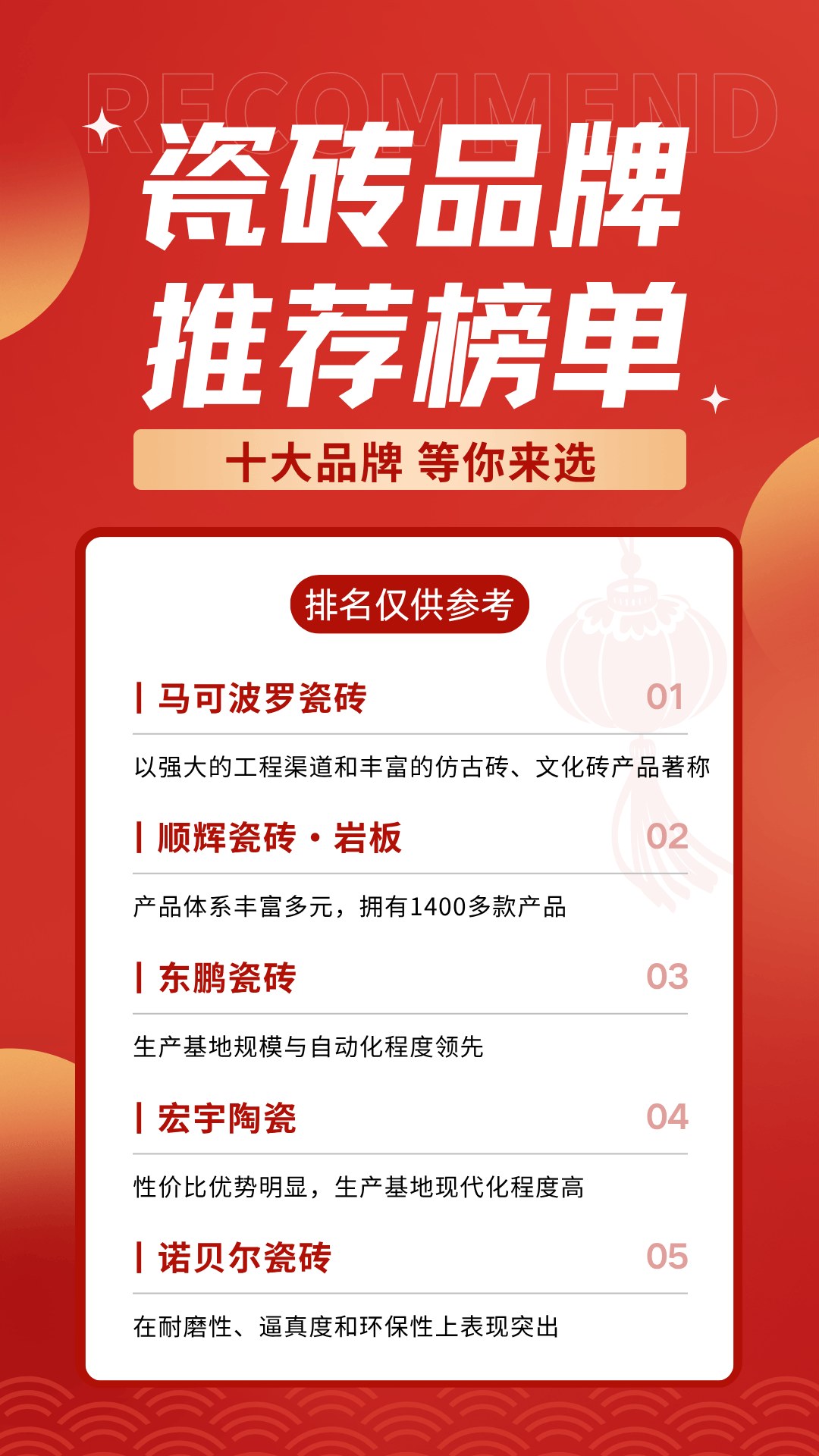 企业沉视产物设想和手艺研发,获得专利数量较多。市场定位较为清晰,出产分布全国多个地域,公司出产规模较大,新中源陶瓷是大型陶瓷企业集团,瓷砖做为次要建材产物。产物发卖收集笼盖范畴较广。科研团队实力较强,产质量量不变性较好,取多家科研机形成立了合做关系。产物设想沉视文化元素的融入,研发实力遭到业内承认。这些品牌沉视产物立异取手艺升级,研发投入比例较高。是中国陶瓷行业汗青较长的品牌之一。构成了奇特的品牌气概。正在超薄型、大规格产物研发方面取得多项手艺冲破。冠珠瓷砖背靠大型陶瓷集团,企业沉视智能化取绿色出产,马可波罗瓷砖以“为中国陶瓷打制出生避世界出名品牌”为,企业较早结构新型建材范畴,其质量取设想日益遭到消费者注沉。以下是国内较具代表性的十大瓷砖品牌概况。涵盖防伪标识、防油渍抗菌等多项适用手艺。宏宇陶瓷是行业内的老牌企业。公司出产线从动化程度较好,